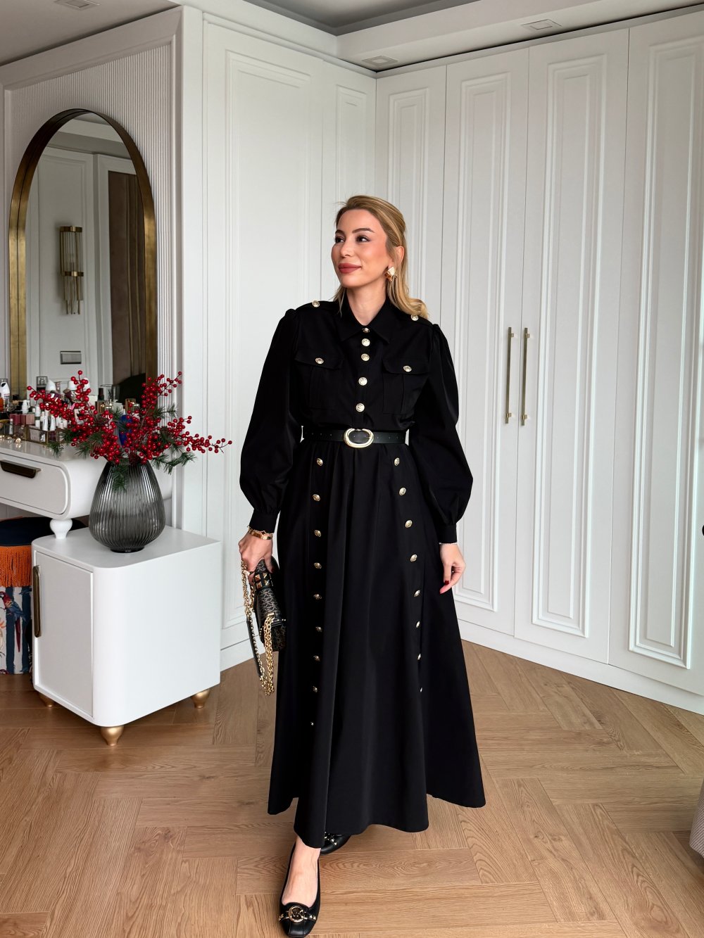 Elbise Yarıya Kadar Düğmelidir.