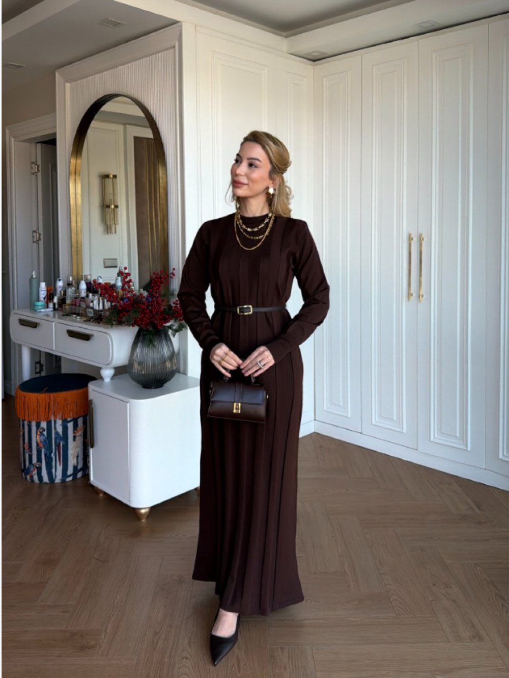 Arzu Triko Elbise Acı Kahve