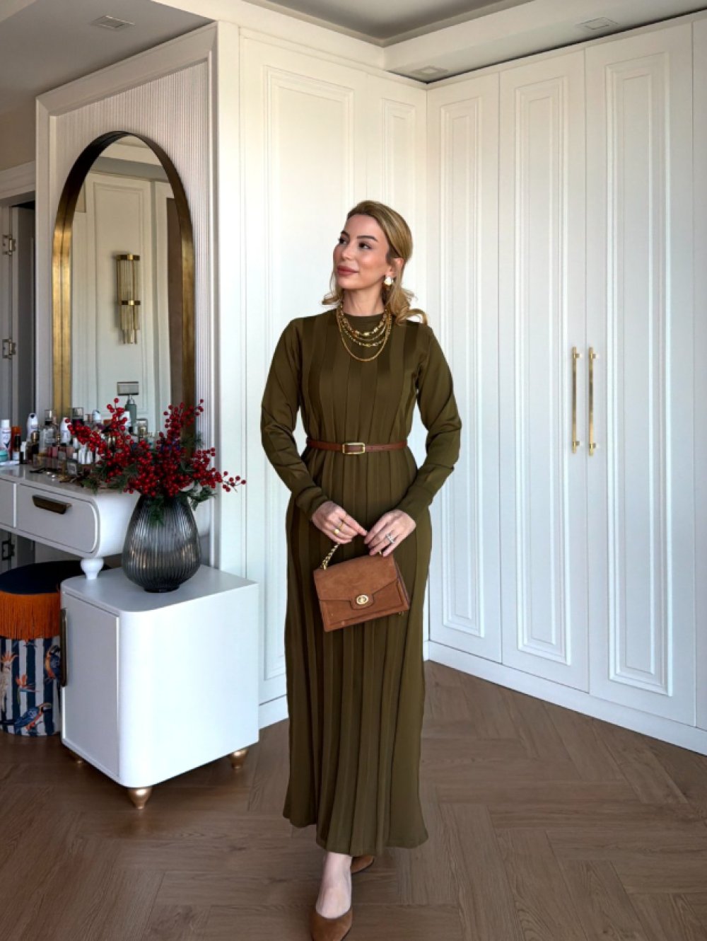 Arzu Triko Elbise Yağ Yeşili