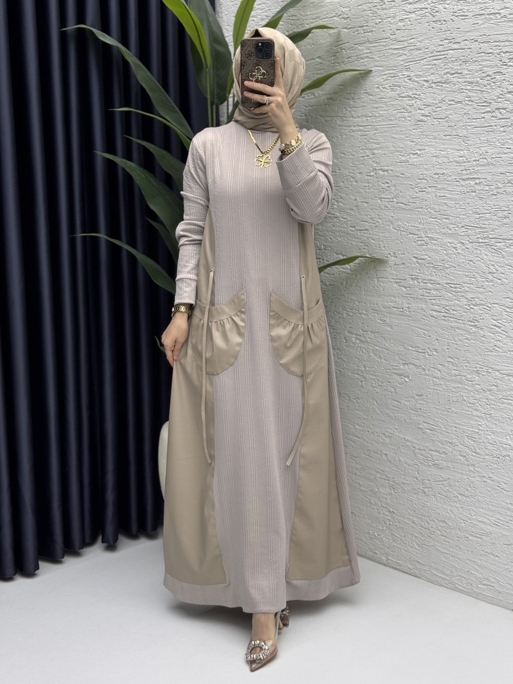 Deri cep detaylı elbisemiz büyük beden seçeneğiyle stokta