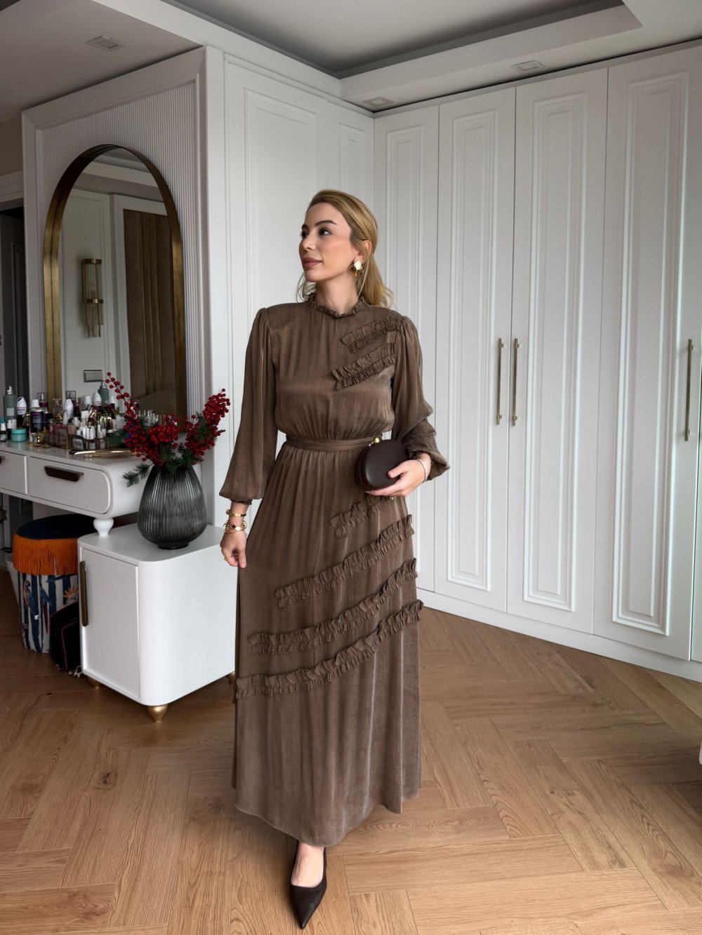 Elbise Yaka Arkasından Fermuarlıdır.