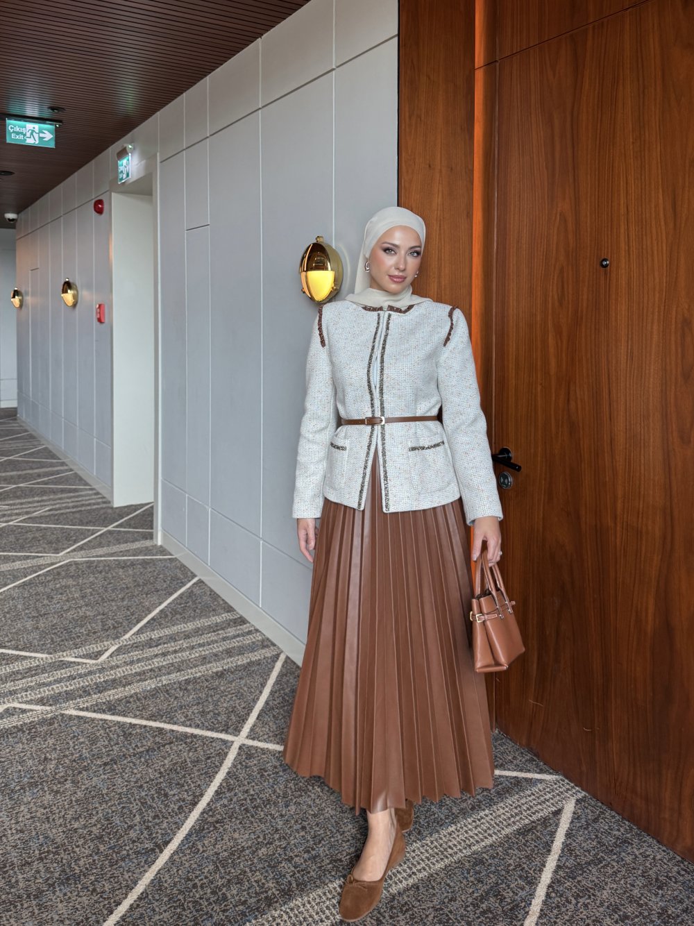 TAKIM CEKET DOKULU KAŞE ETEK DERİ KUMAŞTIR.