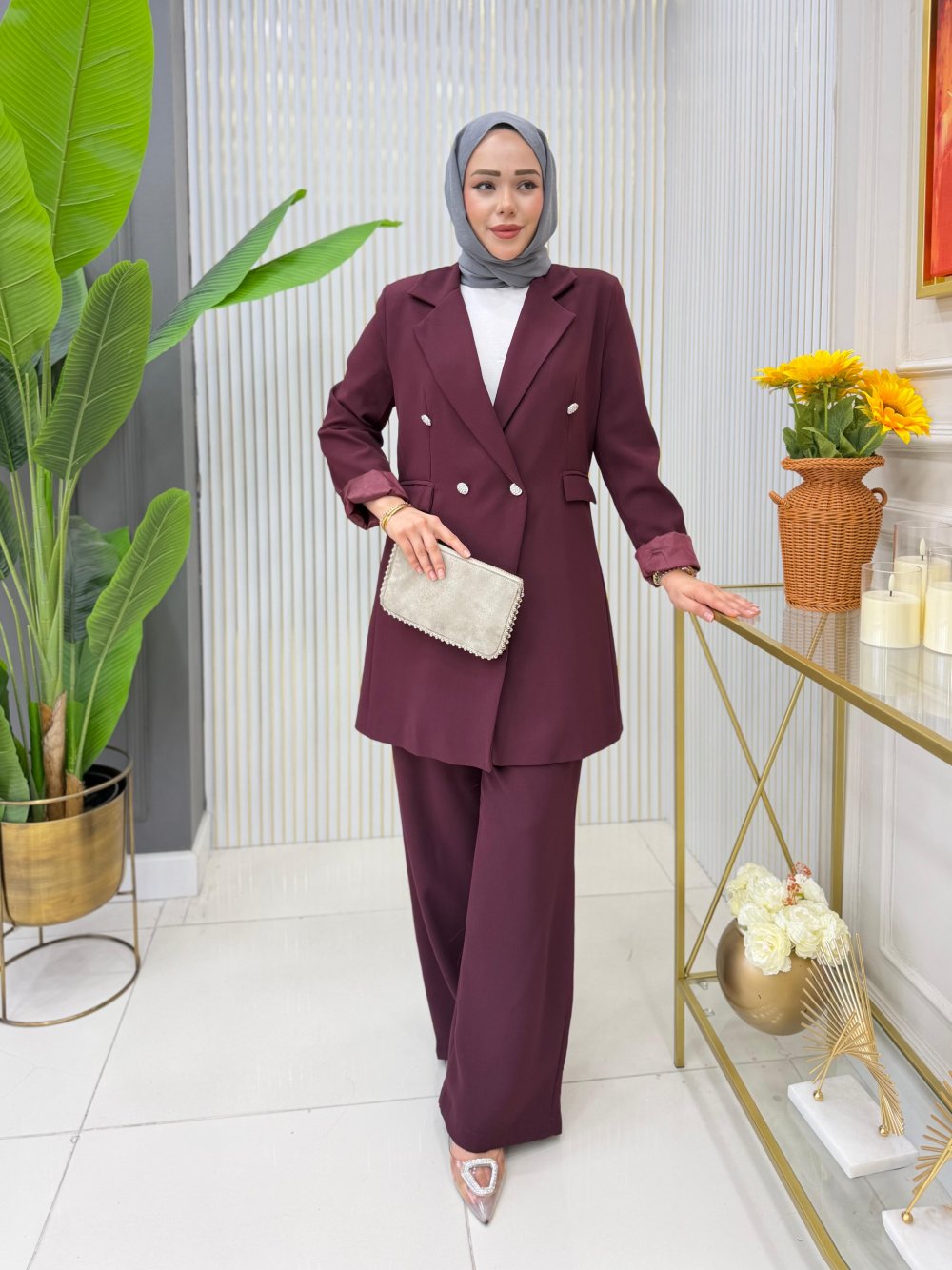 Ayşin Pantolonlu Takım Bordo