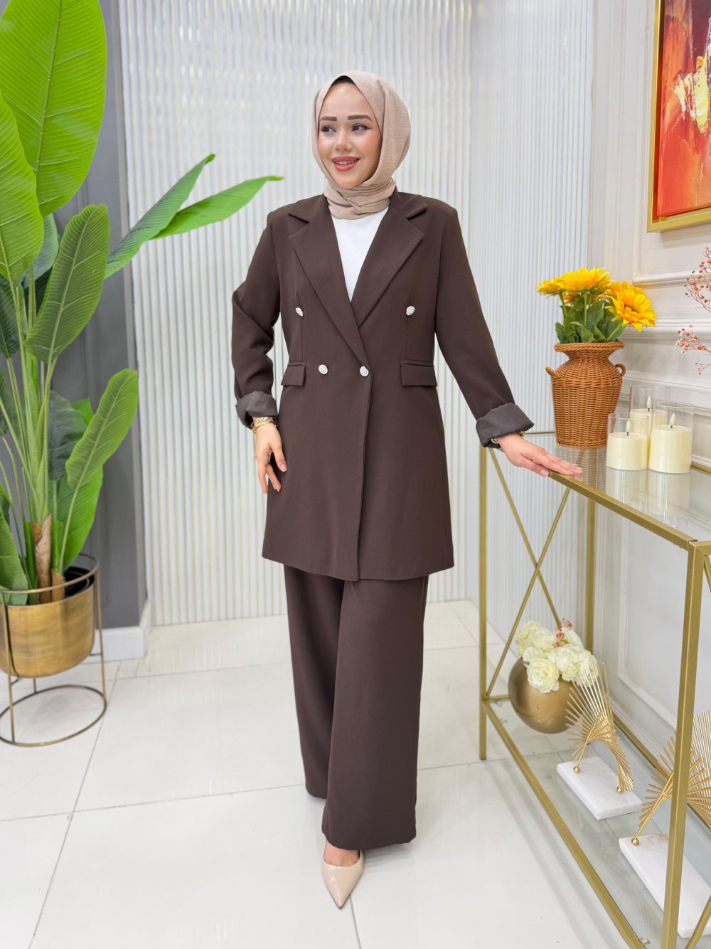 Ayşin Pantolonlu Takım Kahverengi