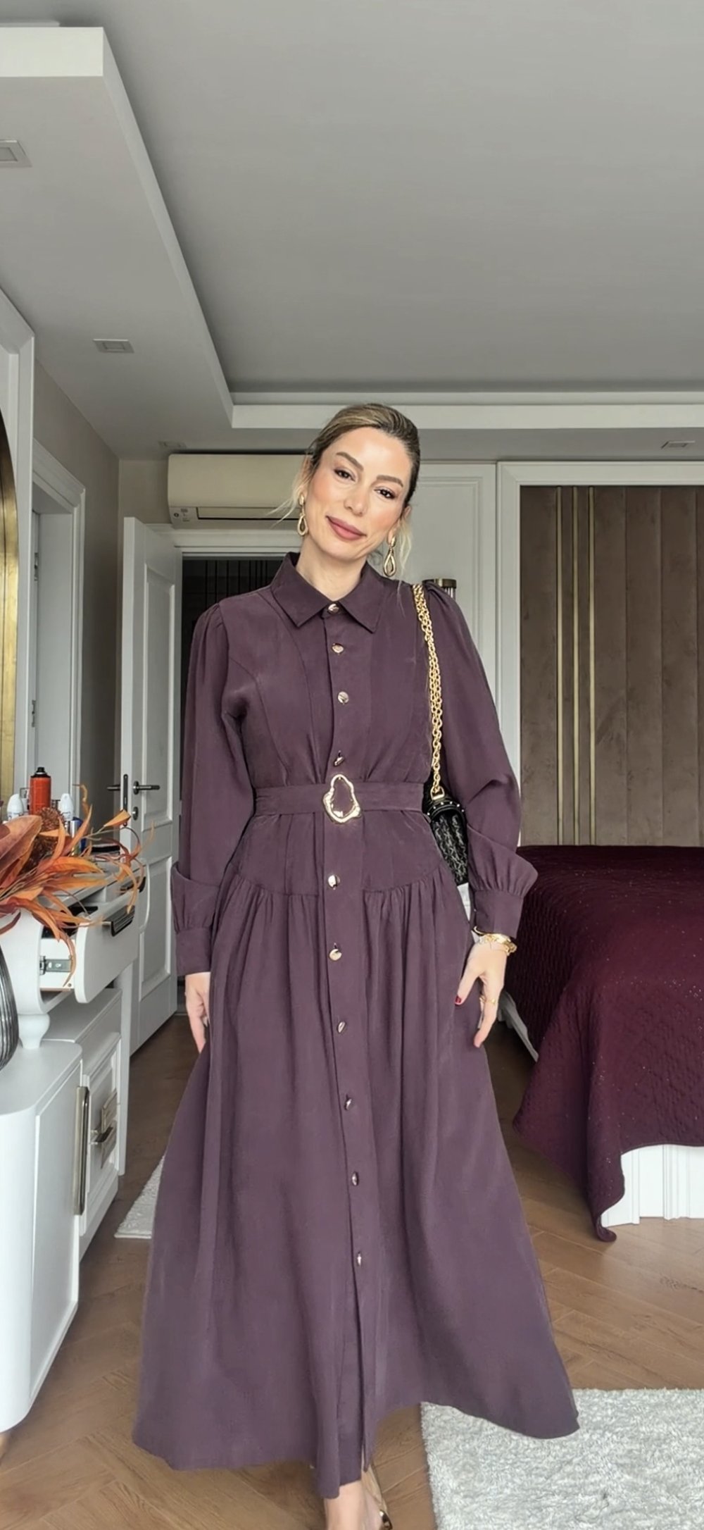 Başak Elbise Mürdüm MÜRDÜM