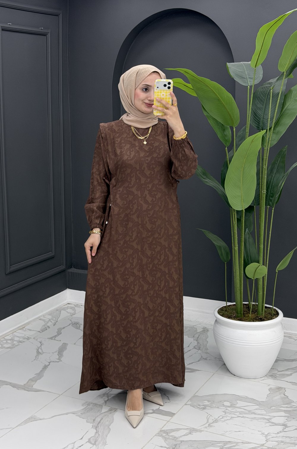 Belinay Elbise - Kahve Kahverengi