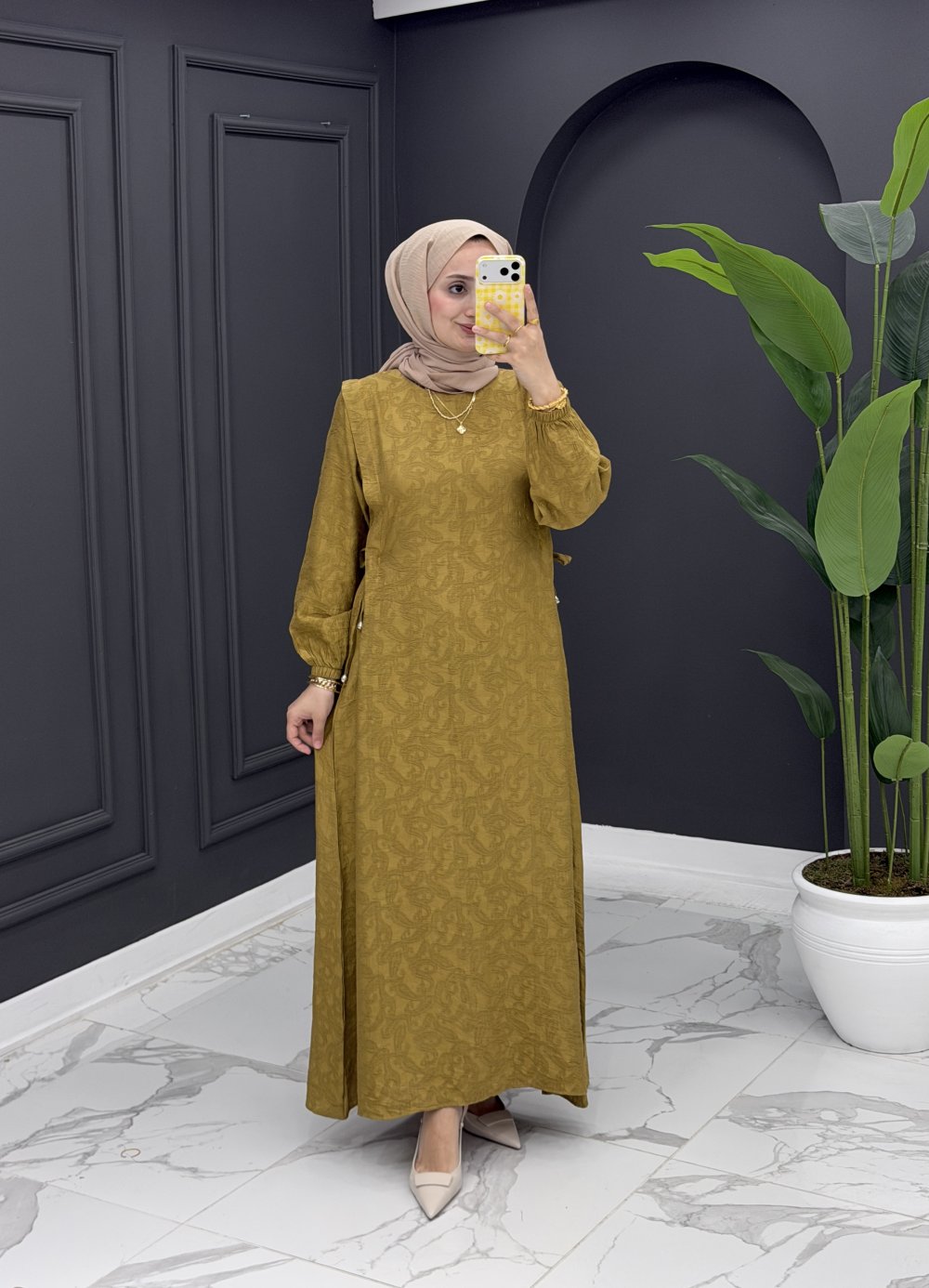 Belinay Elbise - yağ yeşili Yağ Yeşili
