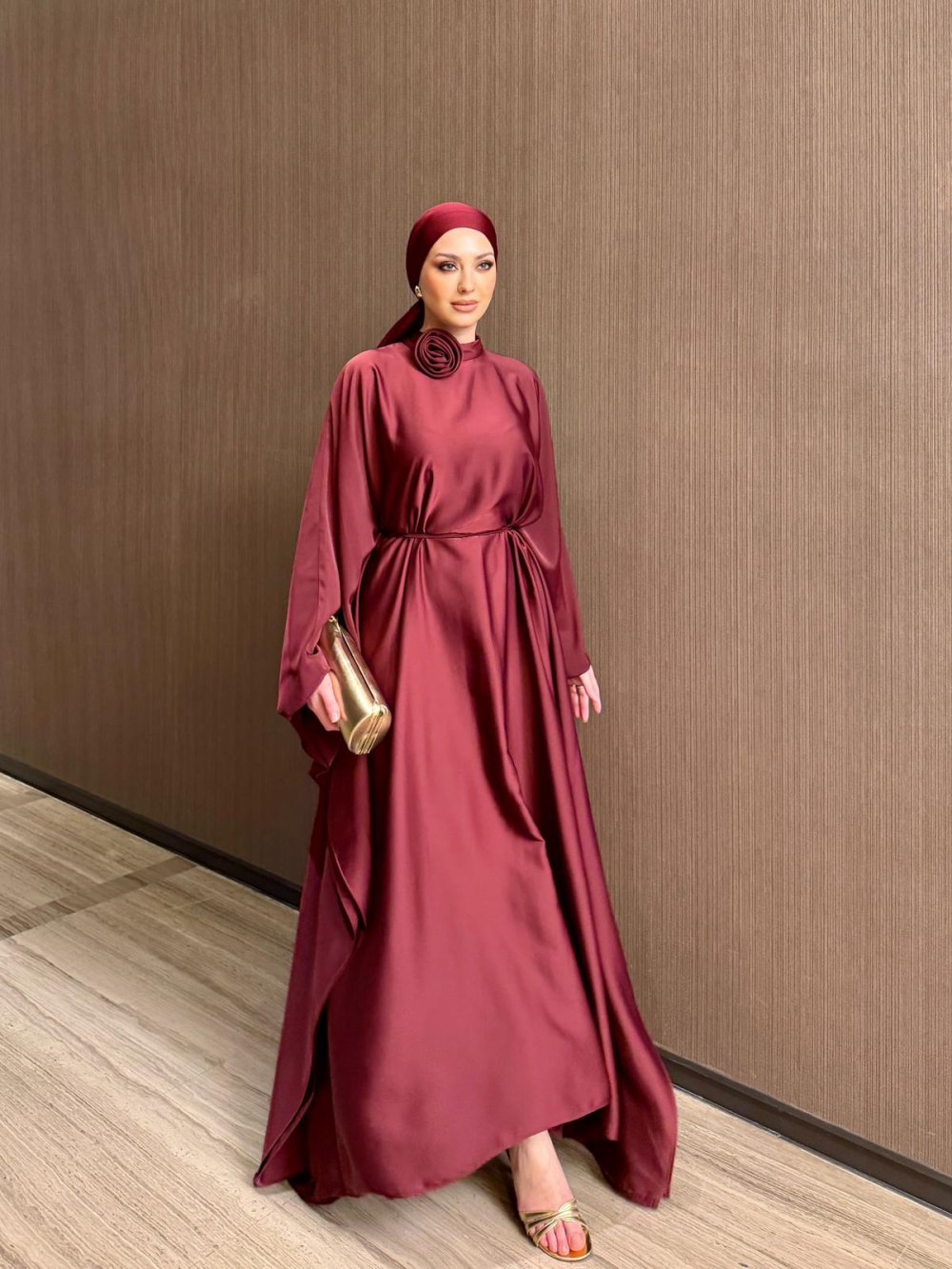 Elbise Asimetrikdir, Kolları Düşük Ve Tamamen yarasa Koldur.