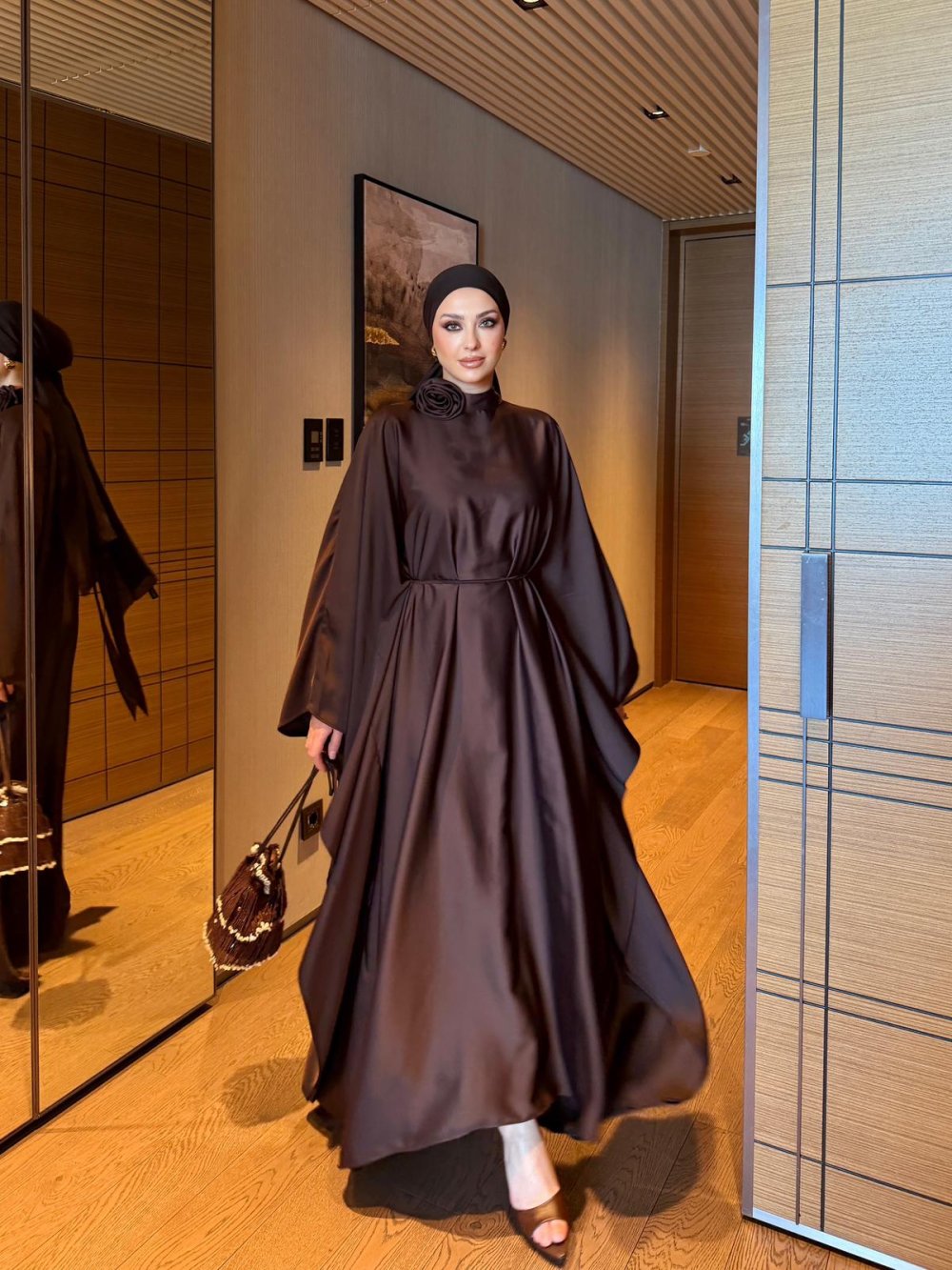 Elbise Asimetrikdir, Kolları Düşük Ve Tamamen yarasa Koldur.