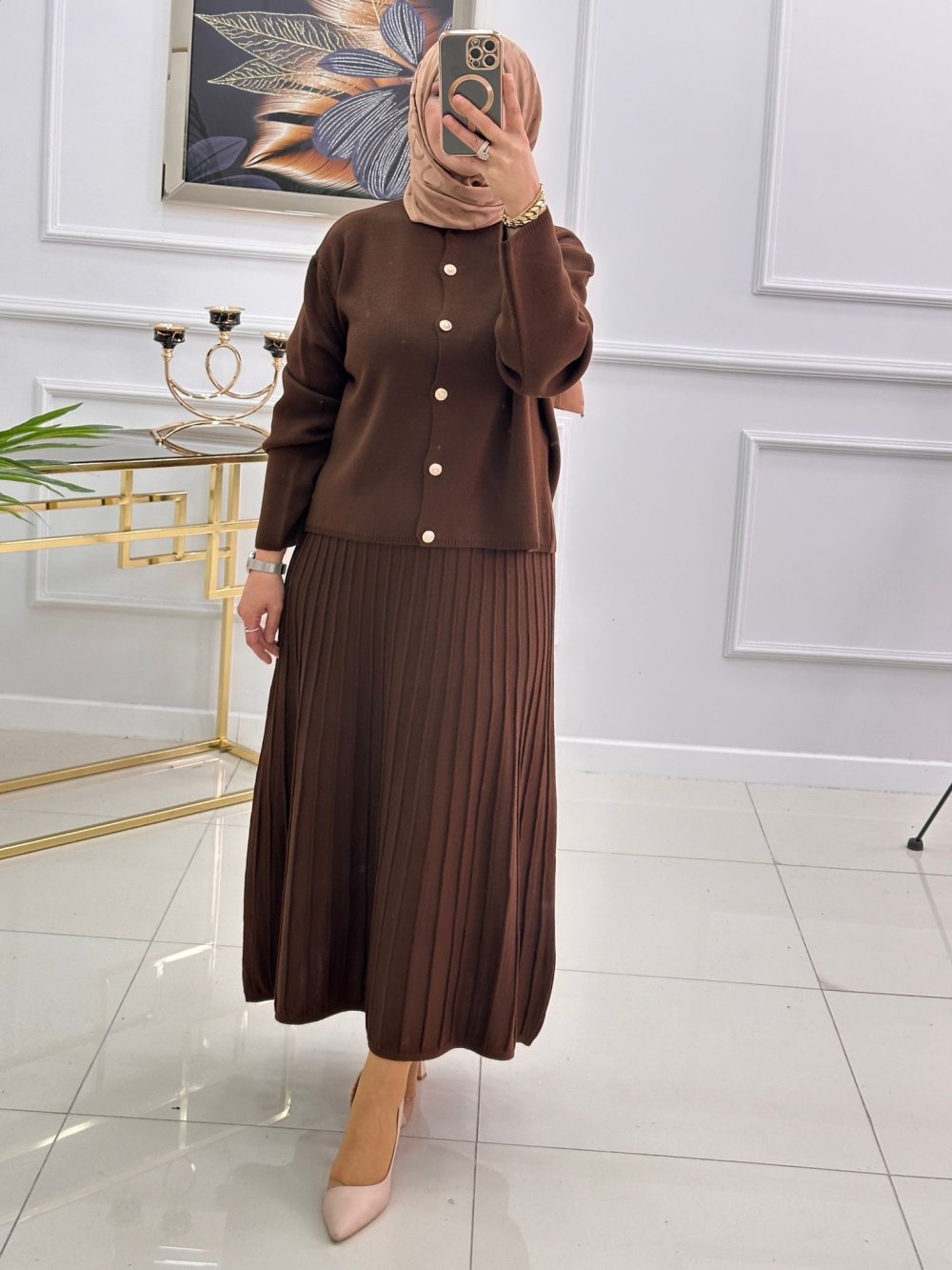 Bengü Triko Takım ile hem şık hem de rahat bir görünüm elde edebilirsiniz. Bu takımı günlük hayatta, ofiste ya da özel günlerde rahatlıkla kullanabilirsiniz. Lastikli etek beli, hareket özgürlüğü sağlar ve vücudu rahatça sarar. Üst kısmı ise tunik tarzında olup, modern ve zarif bir görünüm sunar.