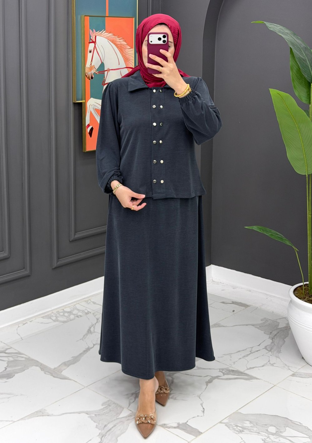 Bergüzar etekli takım Kod= 1677 38-40-42-44 beden Pike kumaş Tunik boyu 58 cm Etek boyu 92 cm