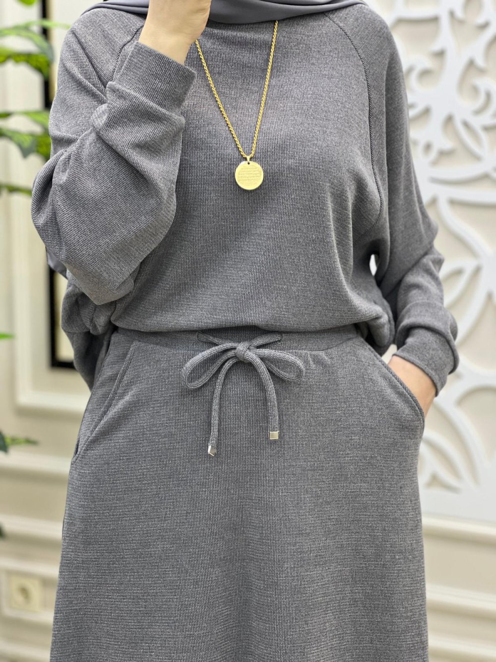 Tesettür Burgu Spor Etek Buluz Takım Şik ve zarif hanımlar Burgu takım kod.13118 kargo ücretsiz Beden 38 40 42 44 Kumaş Türü: Rașel likrali triko esnektir Buluz yarasa koldur Buluz boy: 55.57cm Etek boy: 96.98cm Etek beli lastikli ve ip kemerli ceplidir