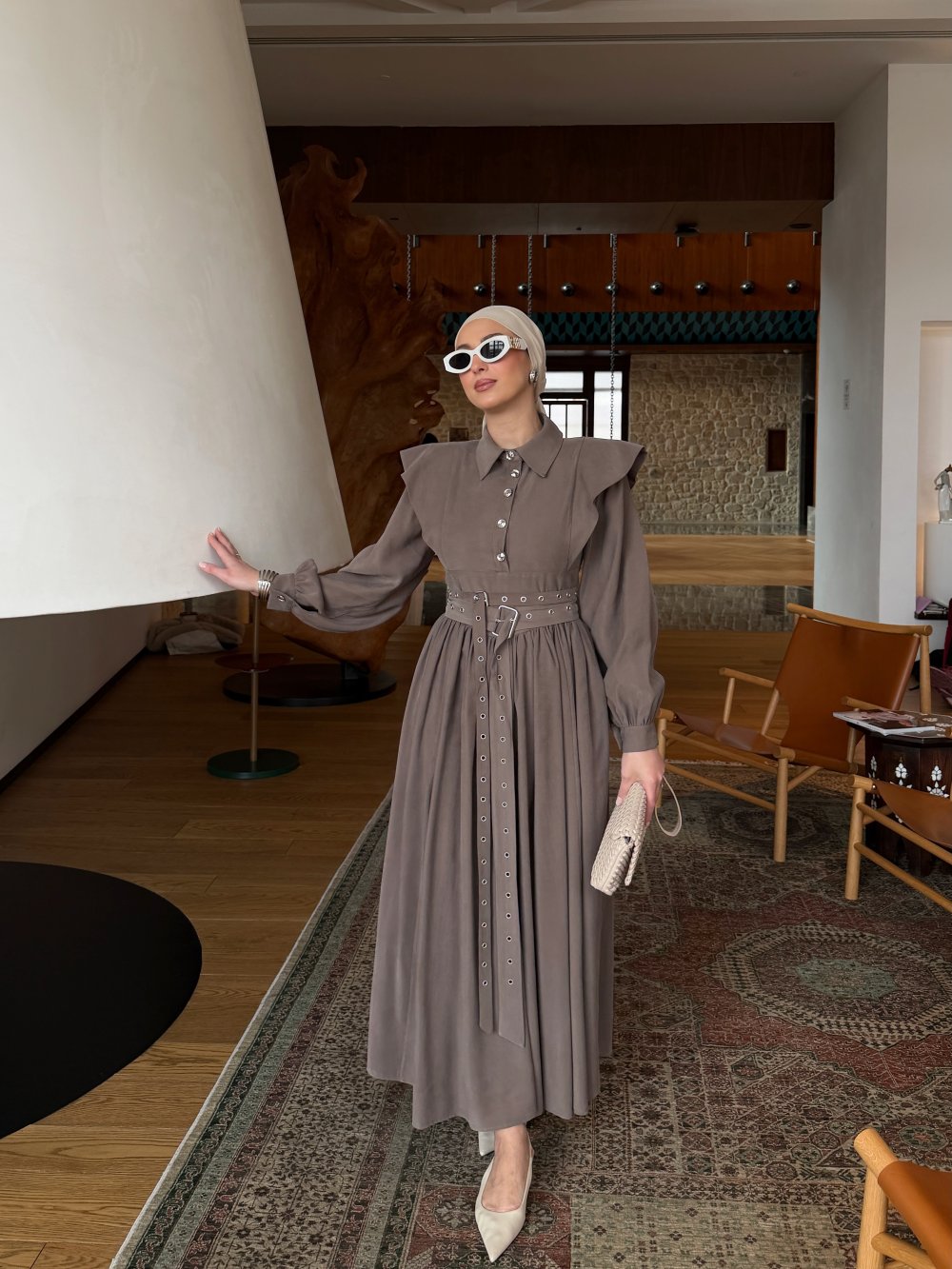 Elbise Kuş Gözü Kemer Detayı Mevcuttur.