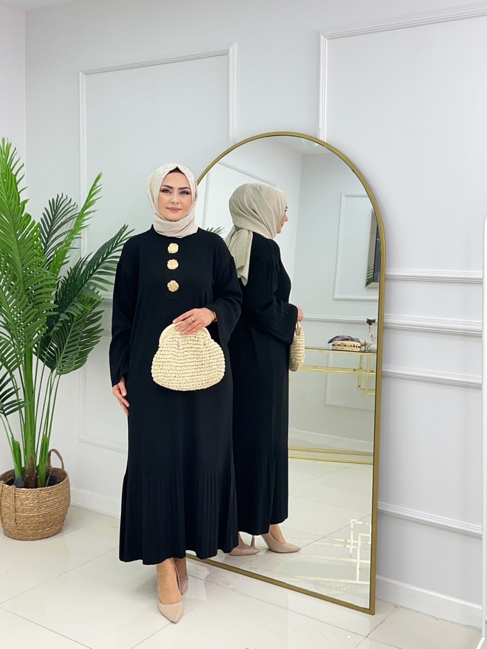 CANSU DÜĞMELİ ELBİSE - SİYAH
