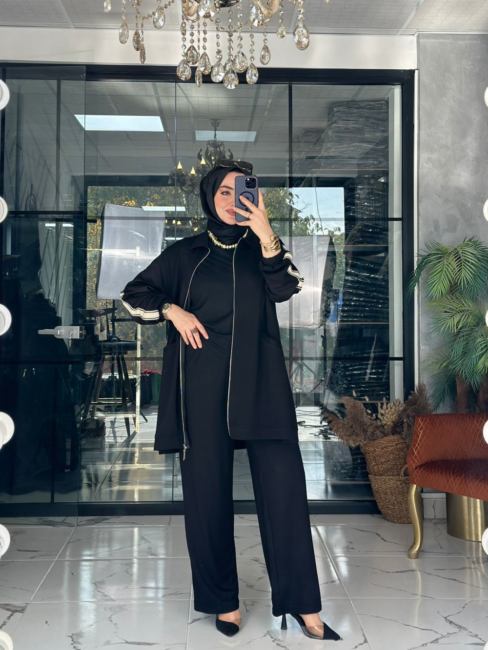 Kumaşı esnek kristal kumaştır. Pantolon beli lastiklidir. Önü hırkalıdır.