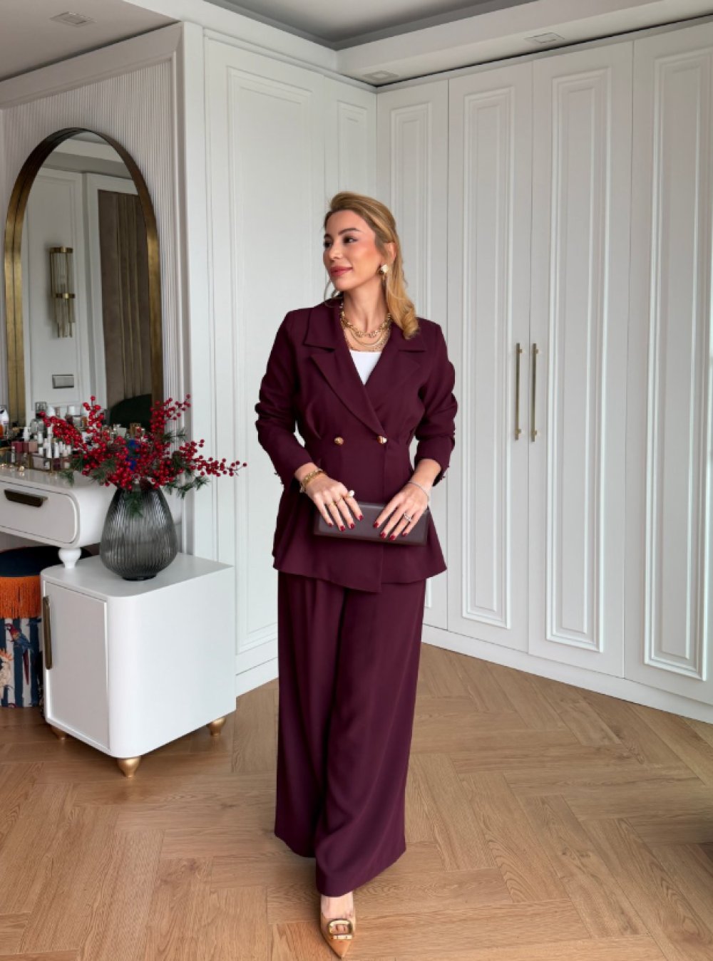 Çiçek Pantolonlu Takım Bordo