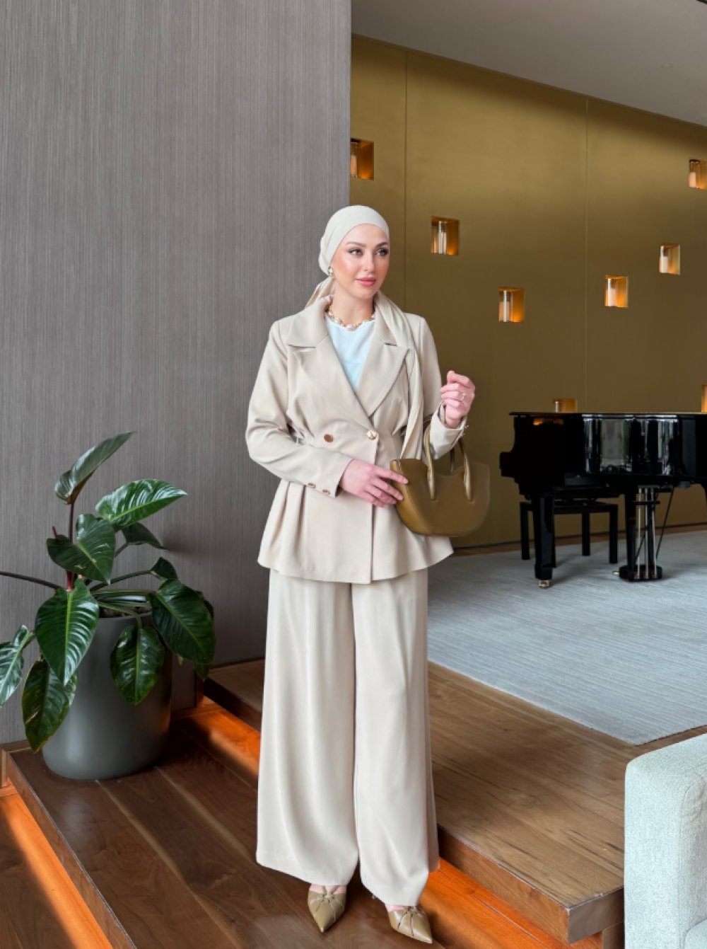 Çiçek Pantolonlu Takım Krem