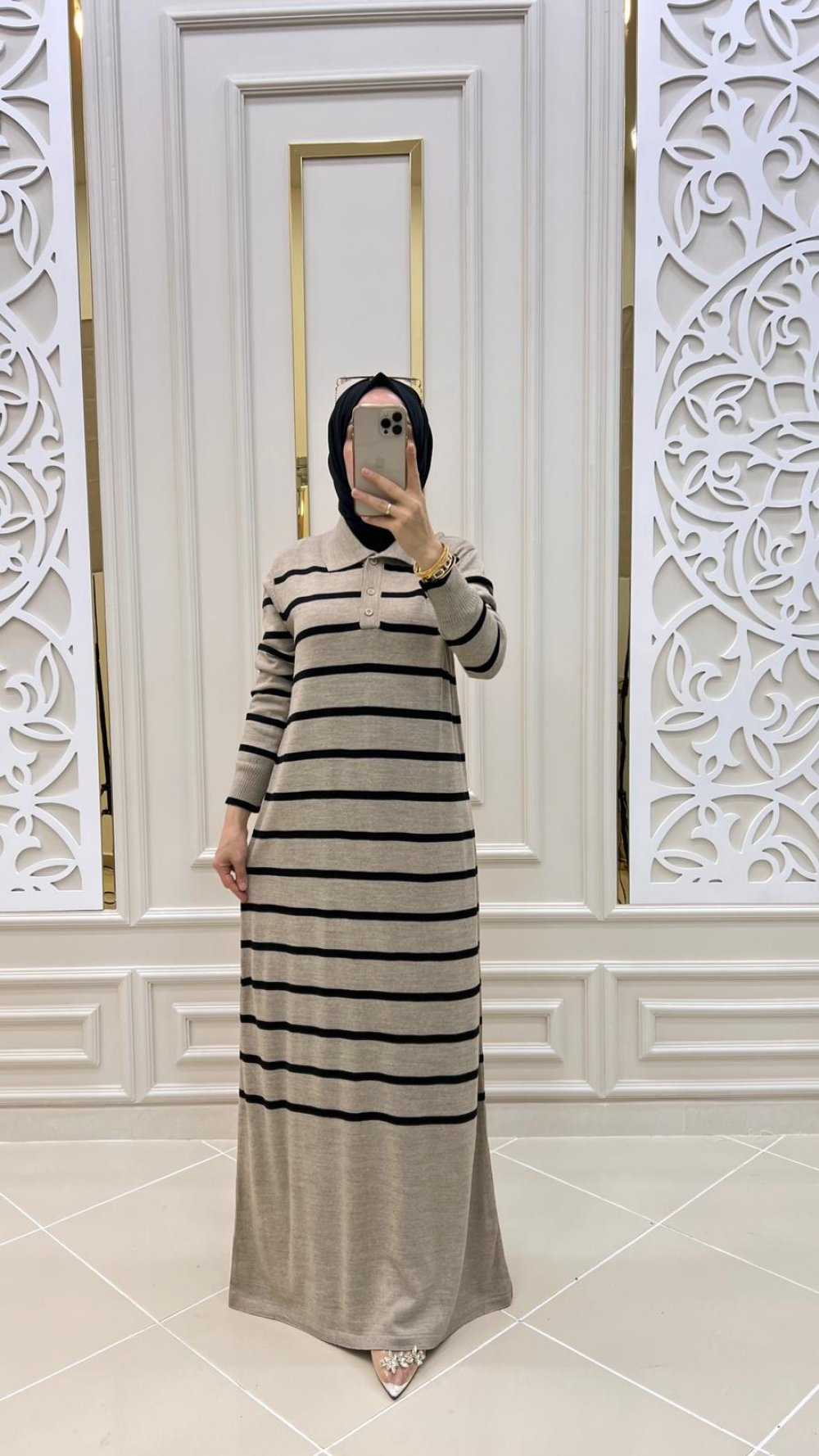 Çizgili elbise Çizgi Kod 12585 38/46 uyumlu standart Yakası düğmelidir Boy 140 /145 arası Kumaş triko Çelik örme