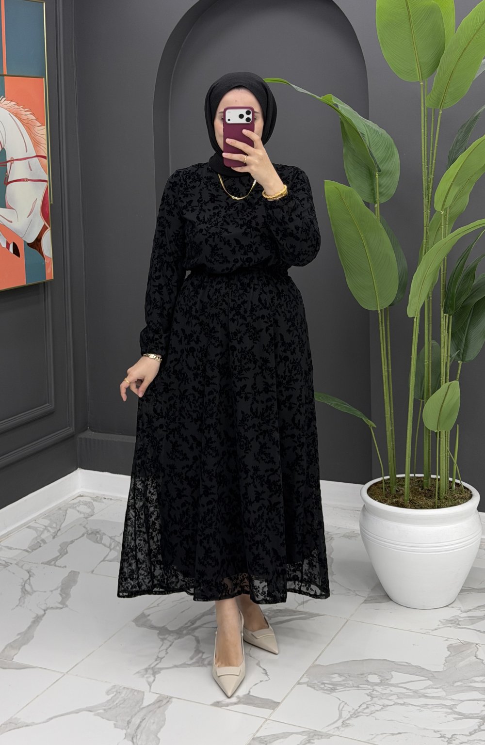 Dantel detaylı elbise-Siyah Siyah