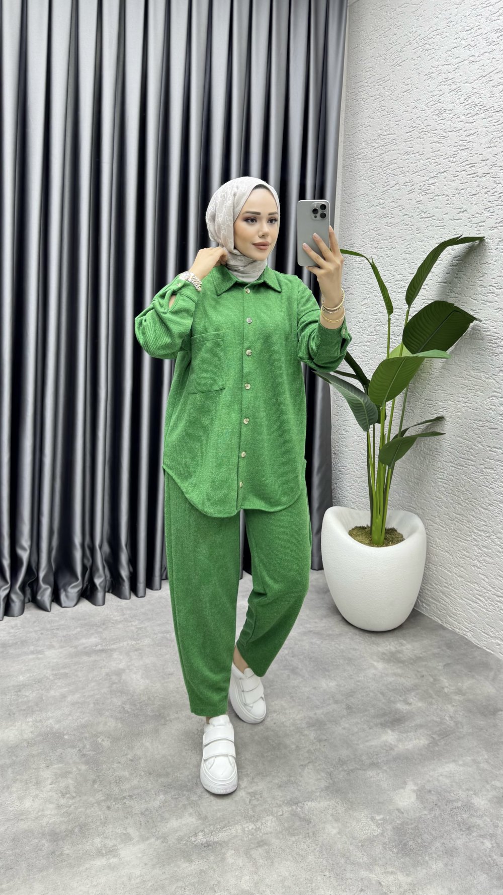 Tunik Tam Boy Düğme, Cep Detaylı