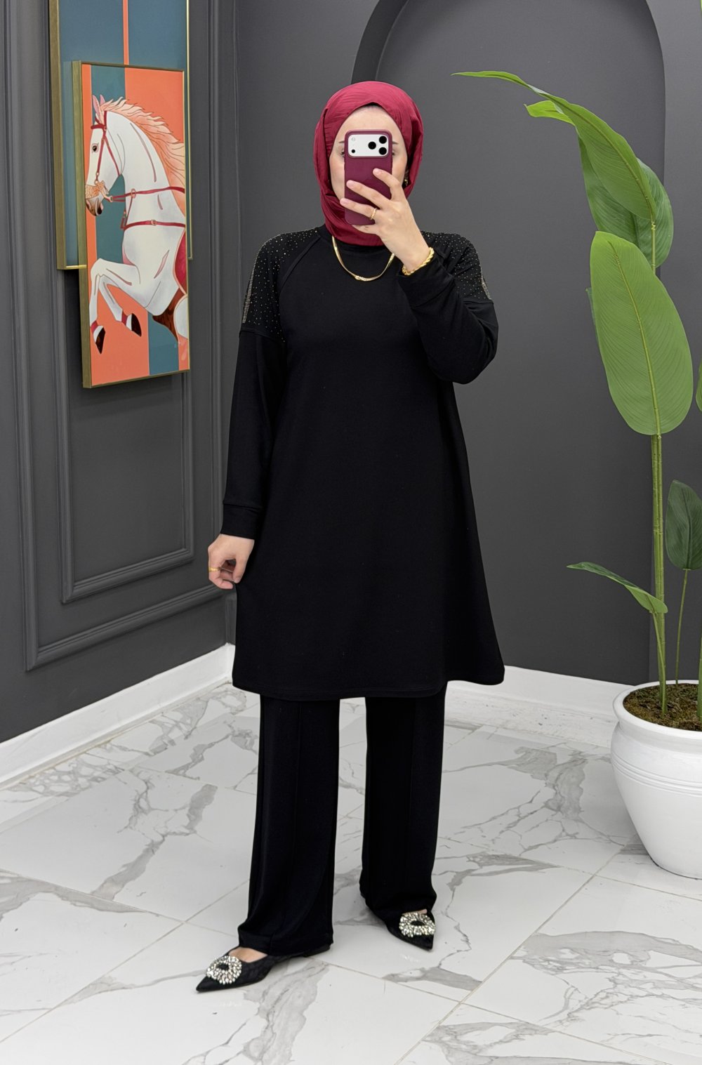 Derin pantolonlu takım Siyah