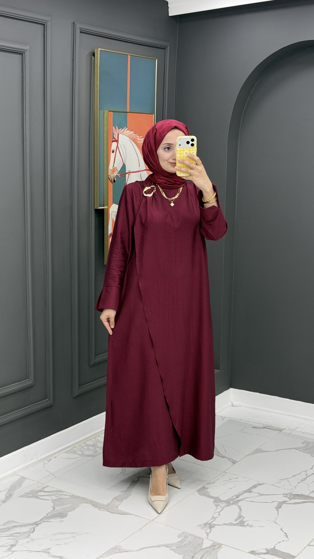 Dilşah Tokalı Elbise - Bordo Bordo