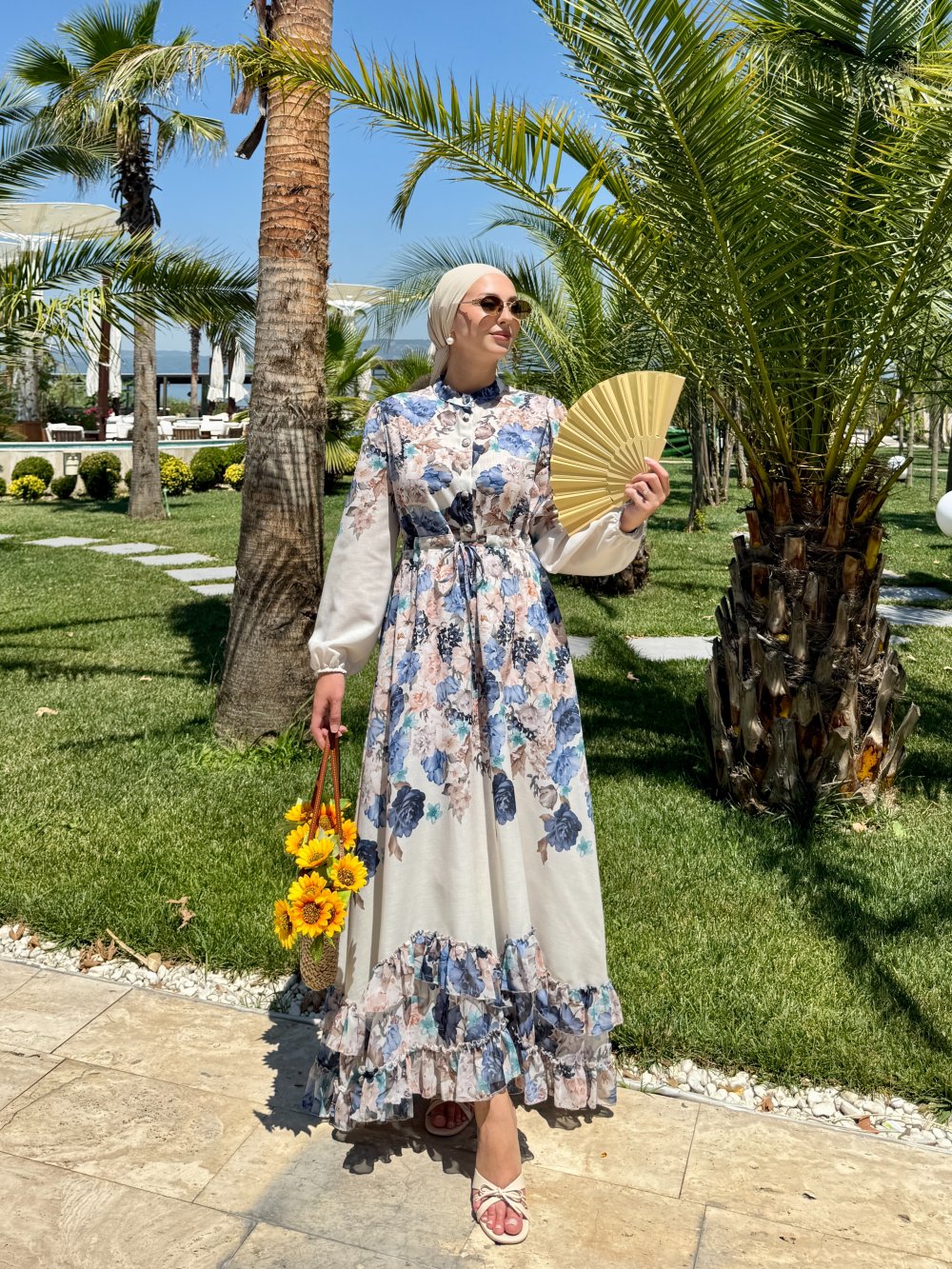Elbise Fırfır ve Çiçek Desen Detaylıdır.