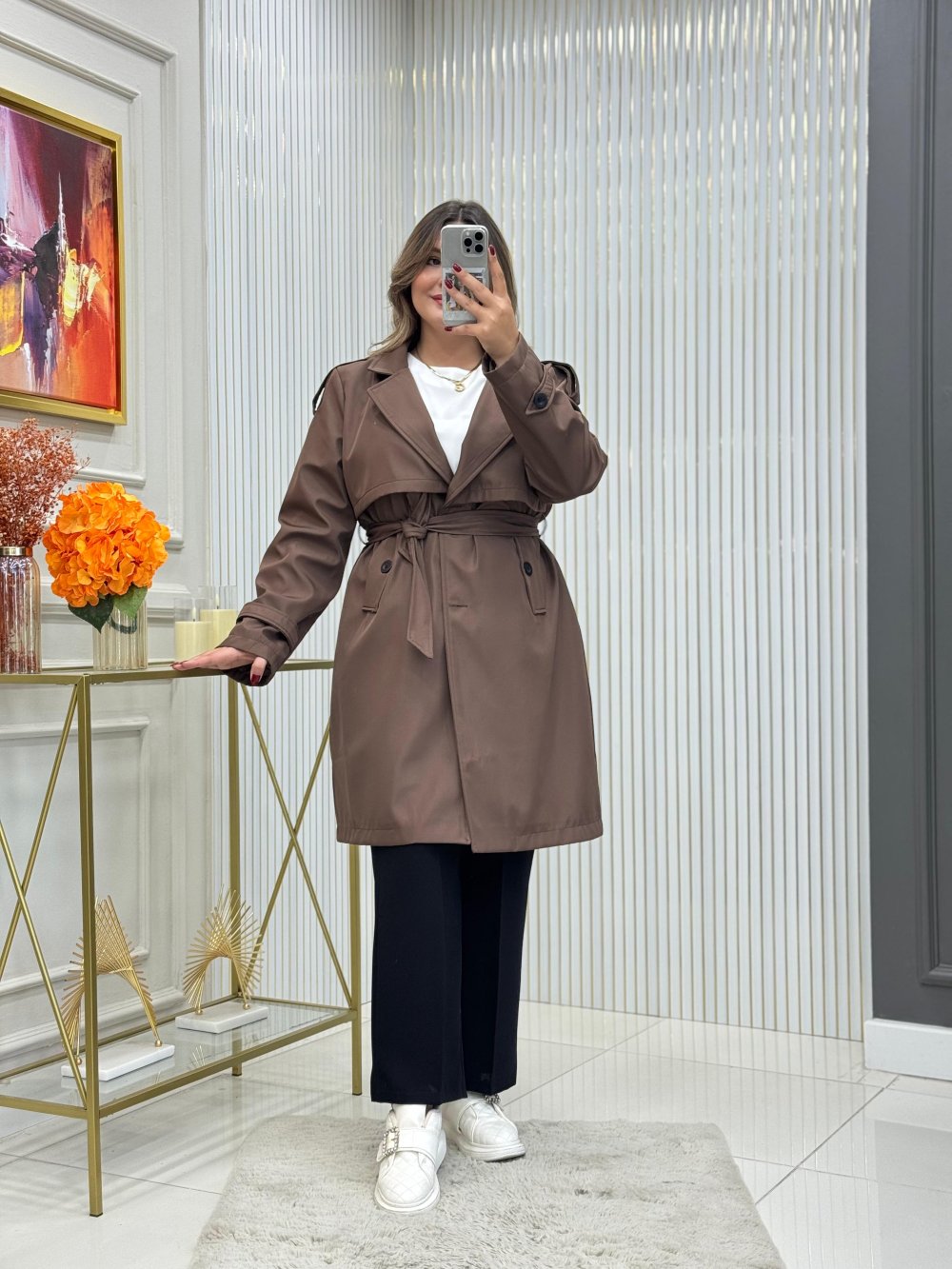 İki yandan ceplidir, kemerlidir.