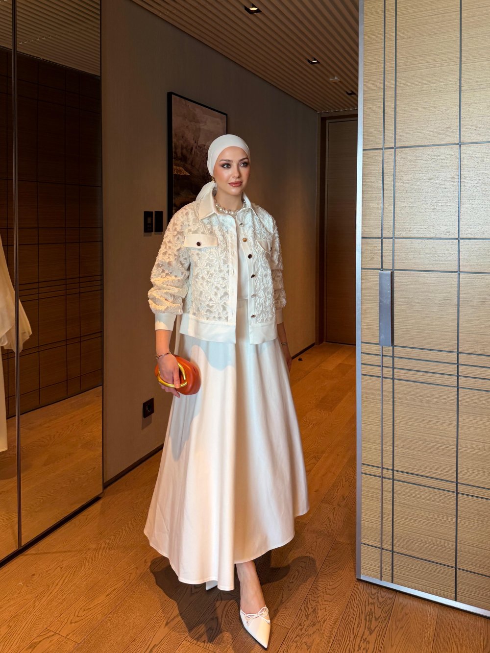 Takım  1.Sınıf Pullu Dantel Kombinli Poliviskon Kumaştır.