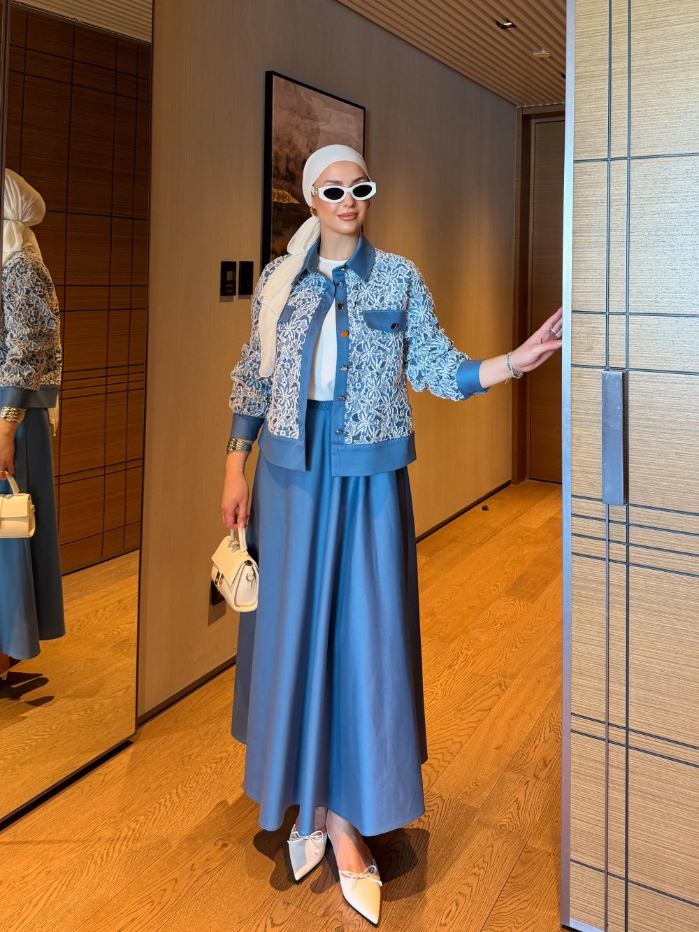 Takım  1.Sınıf Pullu Dantel Kombinli Poliviskon Kumaştır.