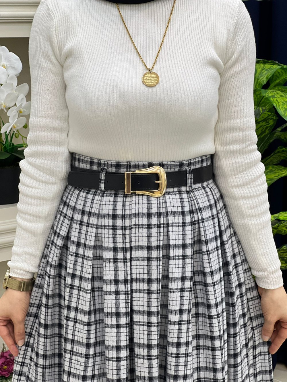 Kişlik Ekose Etek Body Takım Şik ve zarif hanımlar takım kod ekose 13120 kargo ücretsiz Beden 38 40 42 44 46 Kumaş Türü: pamuklu ekose Body: triko kumaş Standarttir Etek boy: 95cm Etek beli fermuarli düğmeli ve kemerlidir