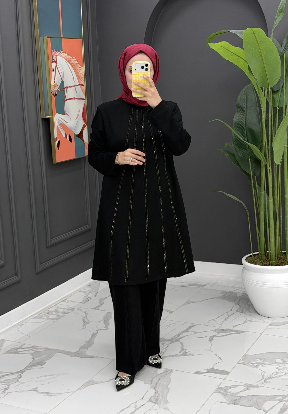 Ela Yazlık Takım - Siyah Siyah Kahverengi