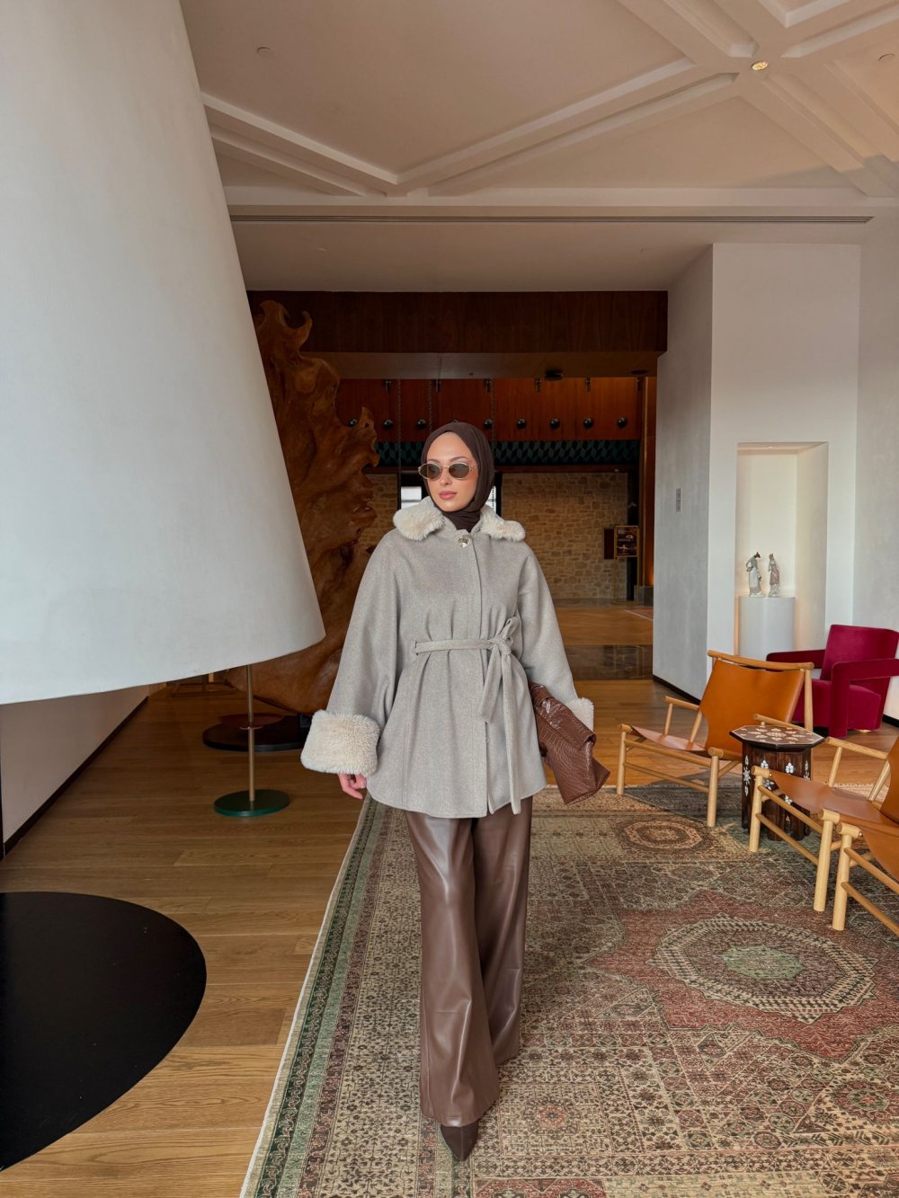 KabanınYakası ve Kolları Kürk Detaylıdır.