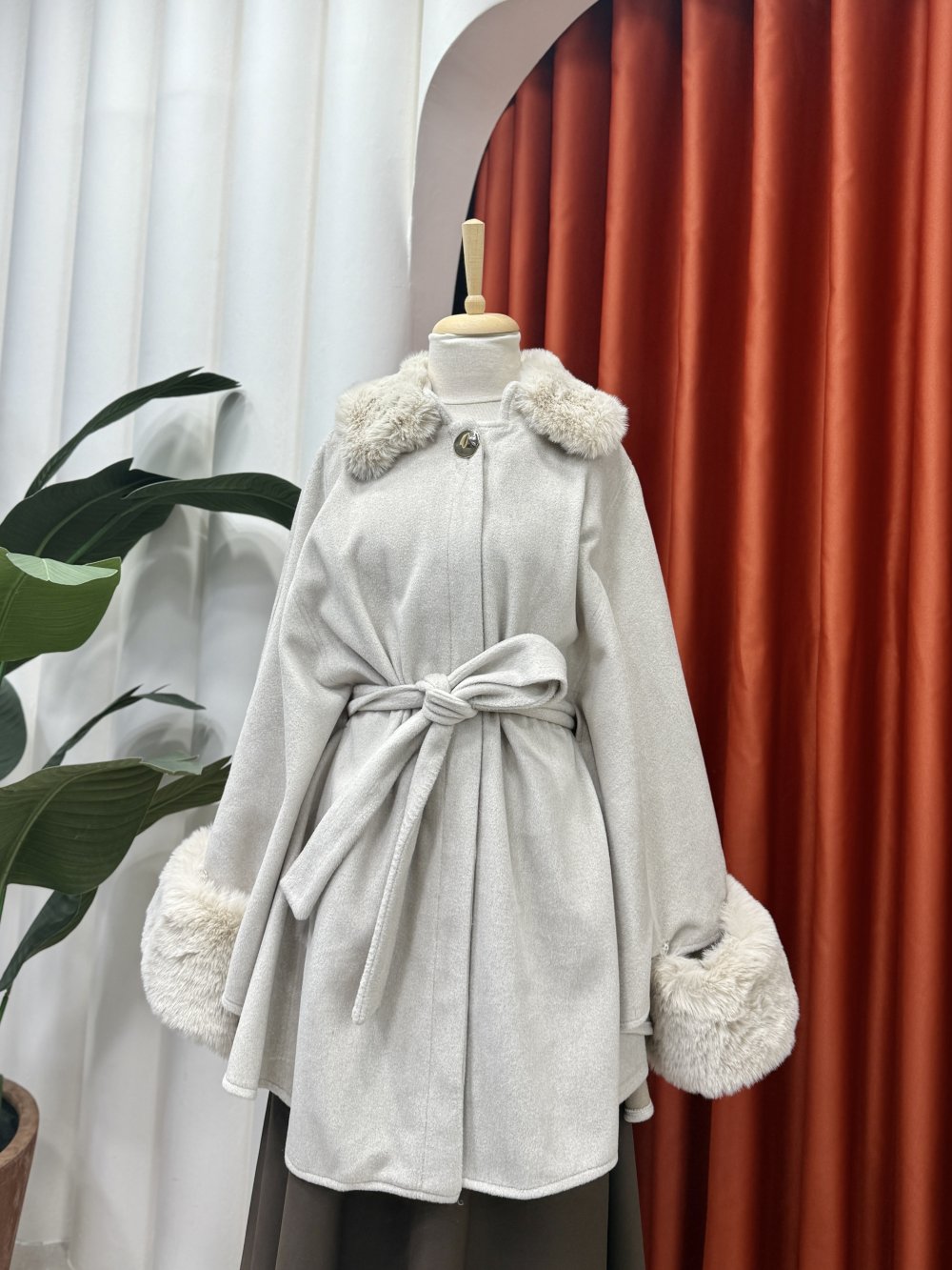 KabanınYakası ve Kolları Kürk Detaylıdır.