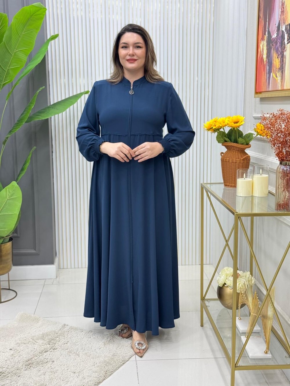 Boydan boya fermuarlıdır.