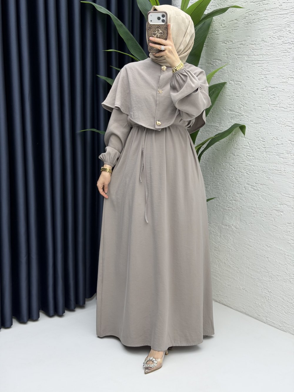 2 farklı model olarak kullanabileceğiniz pelerin detaylı elbisemiz