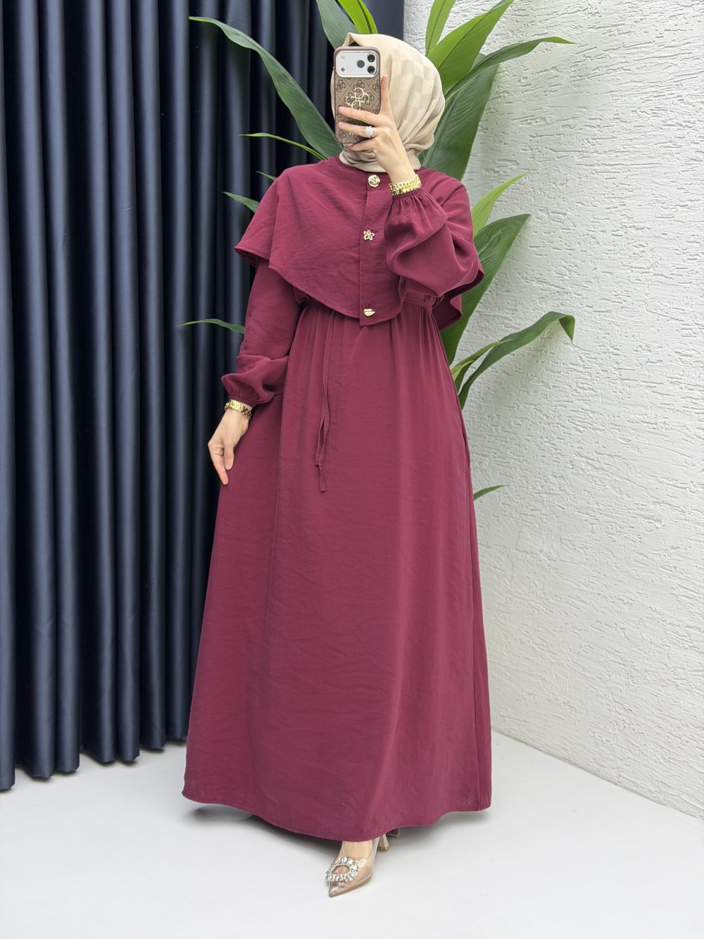 2 farklı model olarak kullanabileceğiniz pelerin detaylı elbisemiz