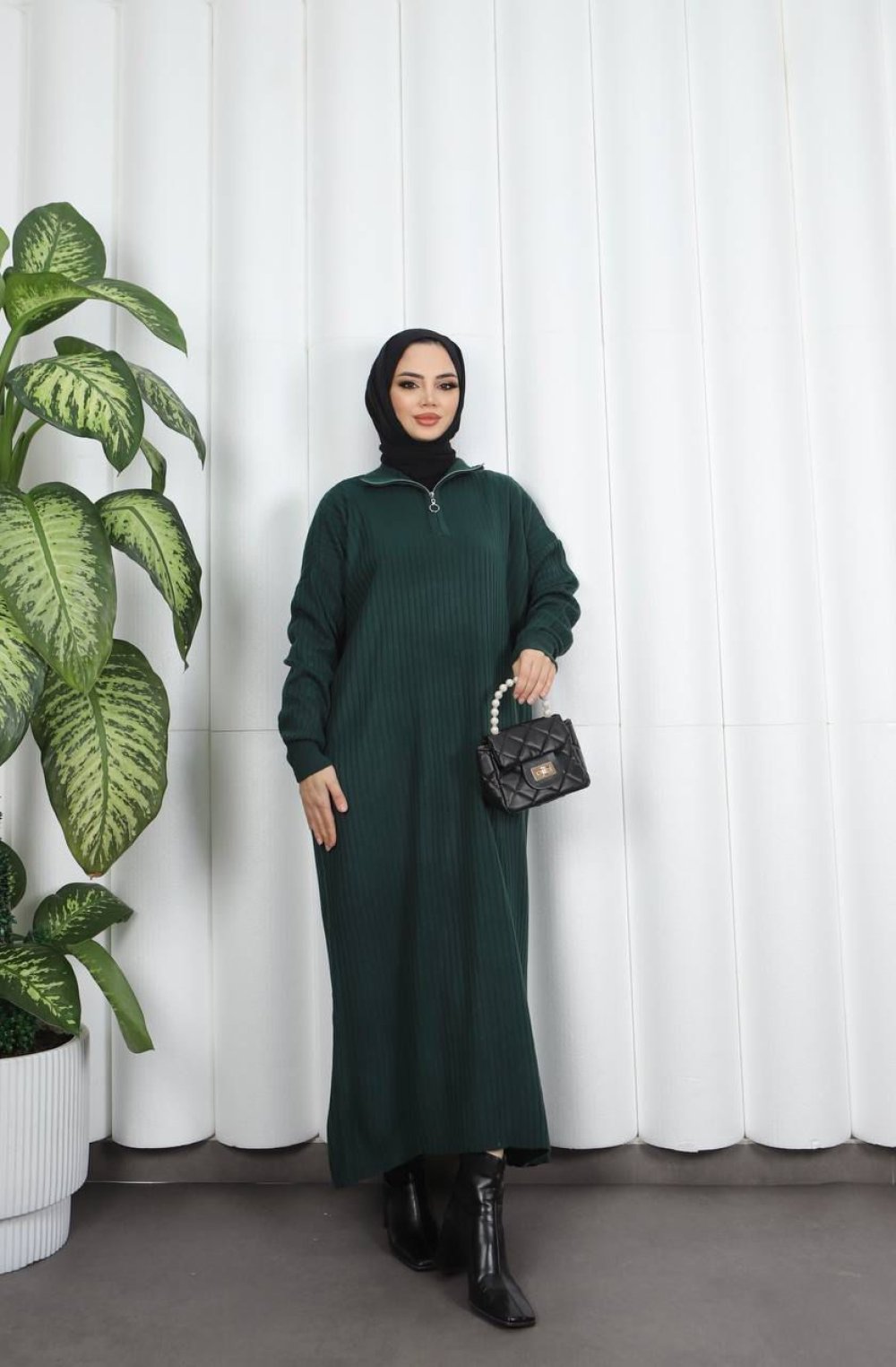 Fermuarlı Triko Elbise