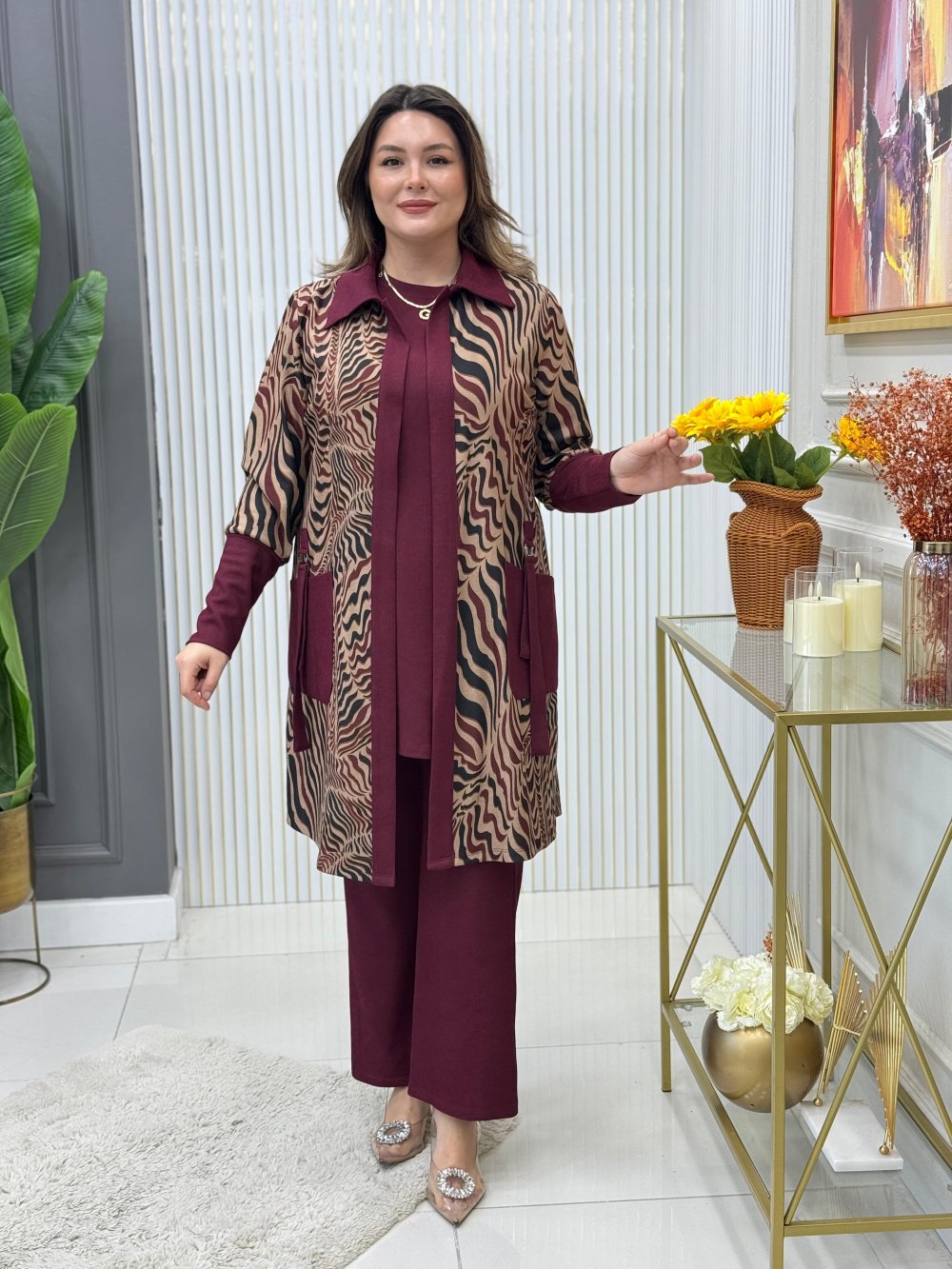 Firuze 3lü Takım Bordo