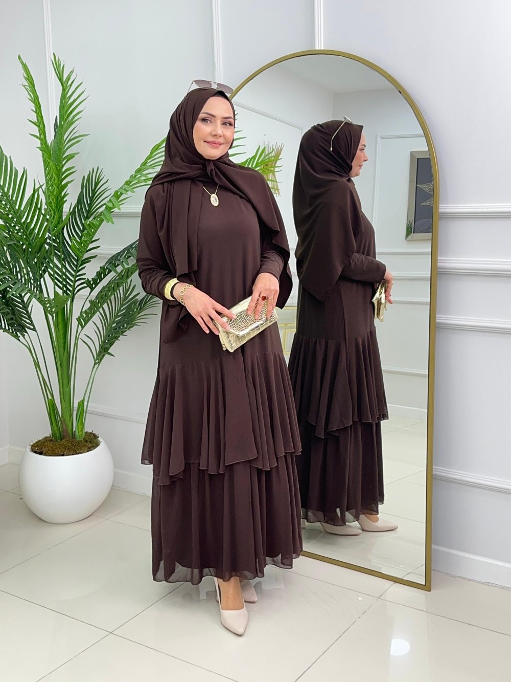 FÜSUN ELBİSE - KAHVERENGİ