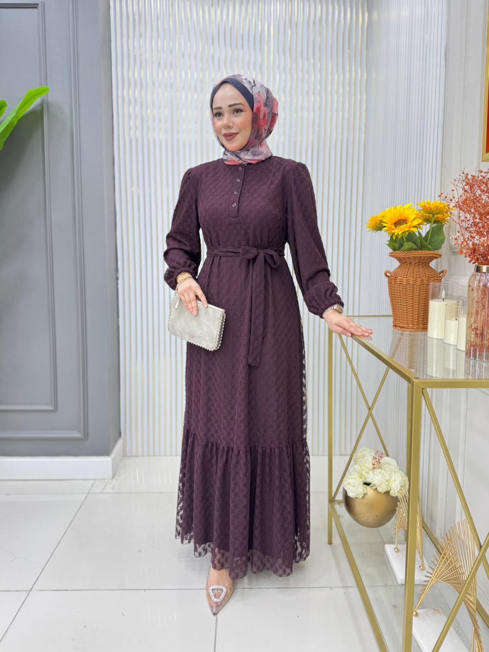 Gökçe Dantel Elbise Mürdüm