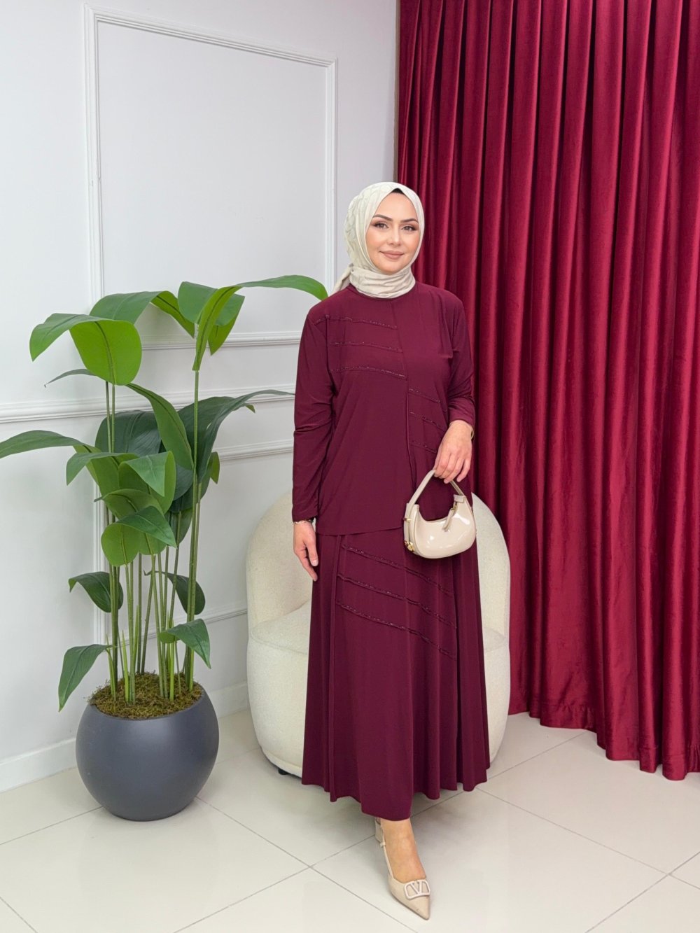 GÜLBEN ETEKLİ TAKIM - BORDO