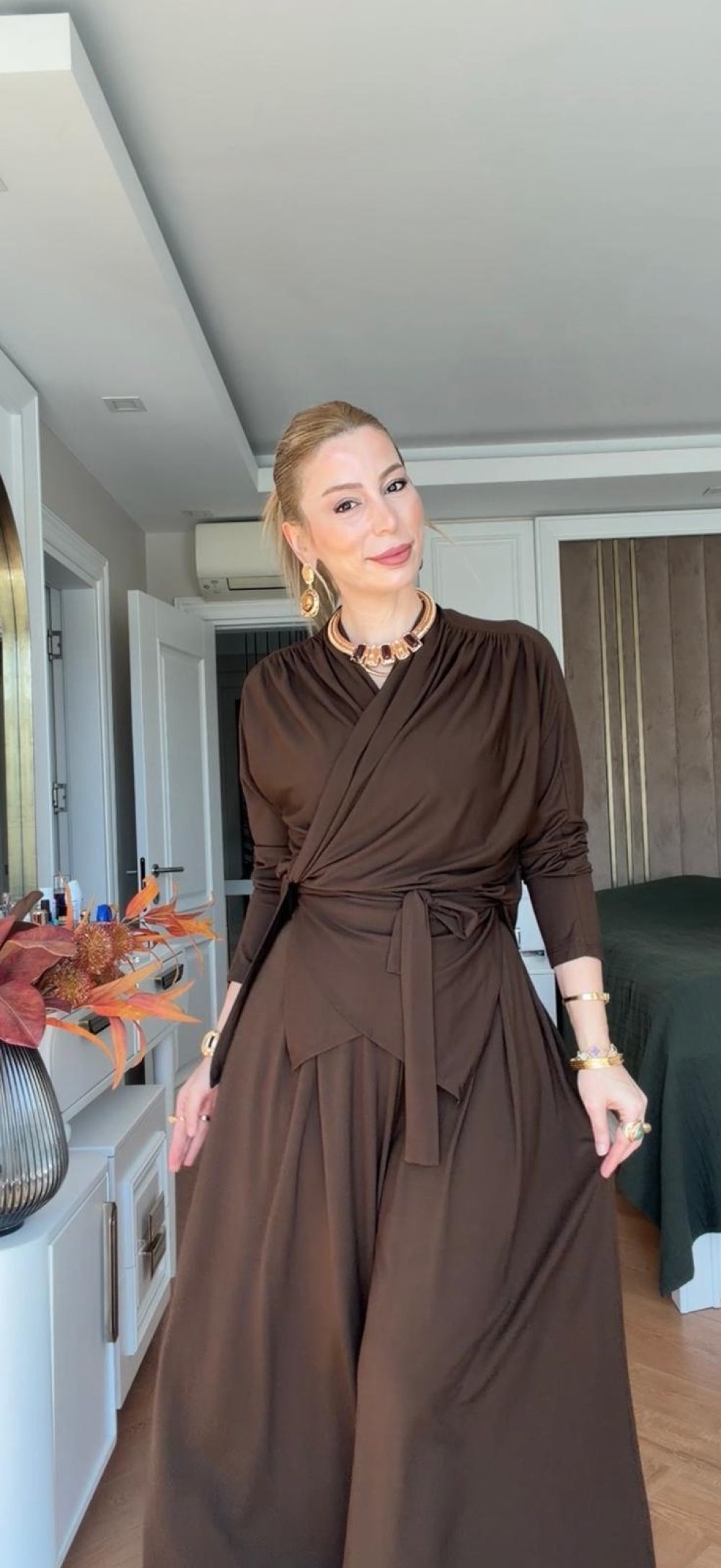 Gülcan Pantolonlu Takım Kahve KAHVE