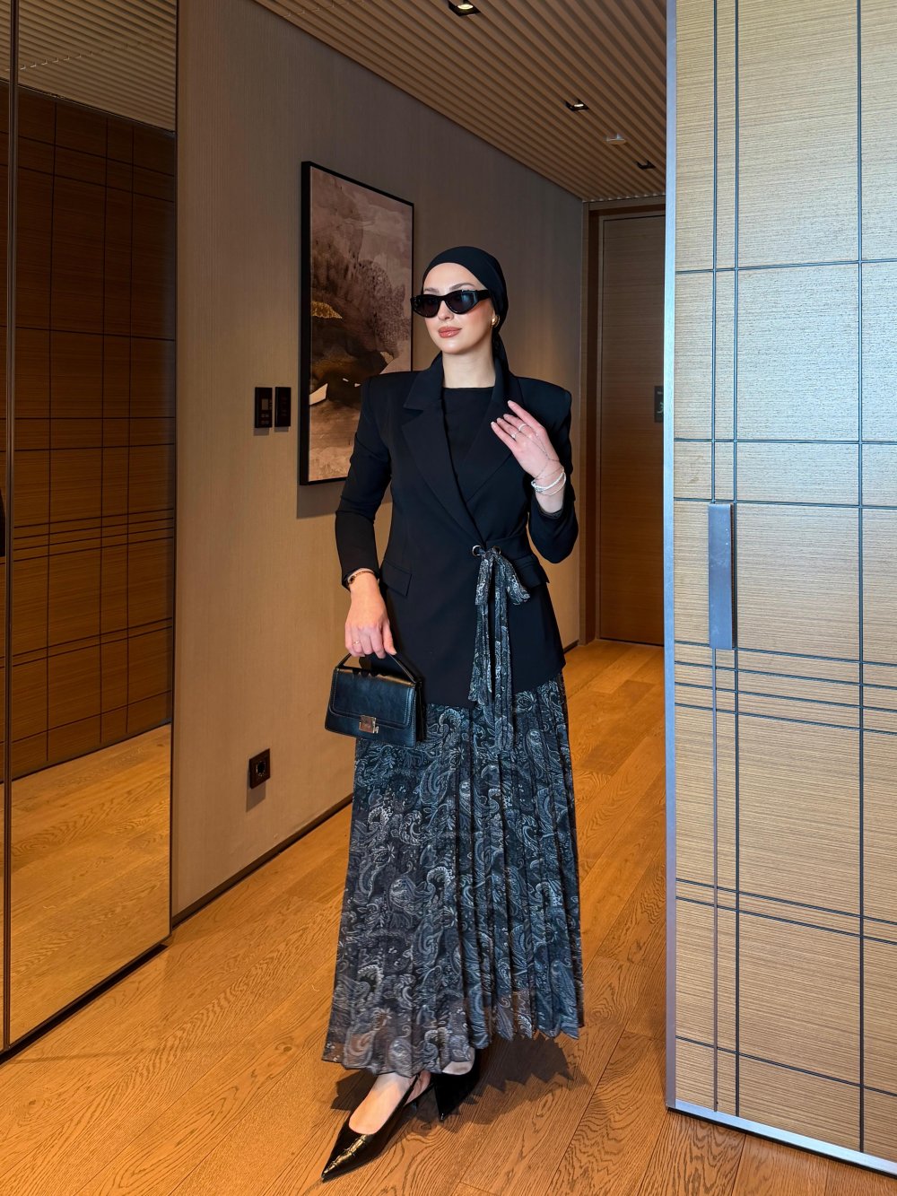 Ürün Eteği 1 Sınıf Desenli Şifon Ceket Lamineli Tivil Kumaştır.