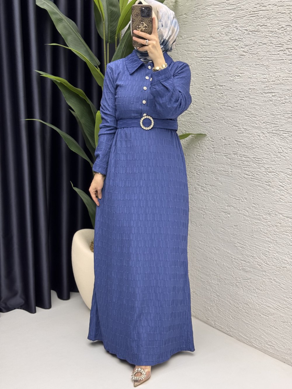 Kemer detaylı elbisemiz stokta