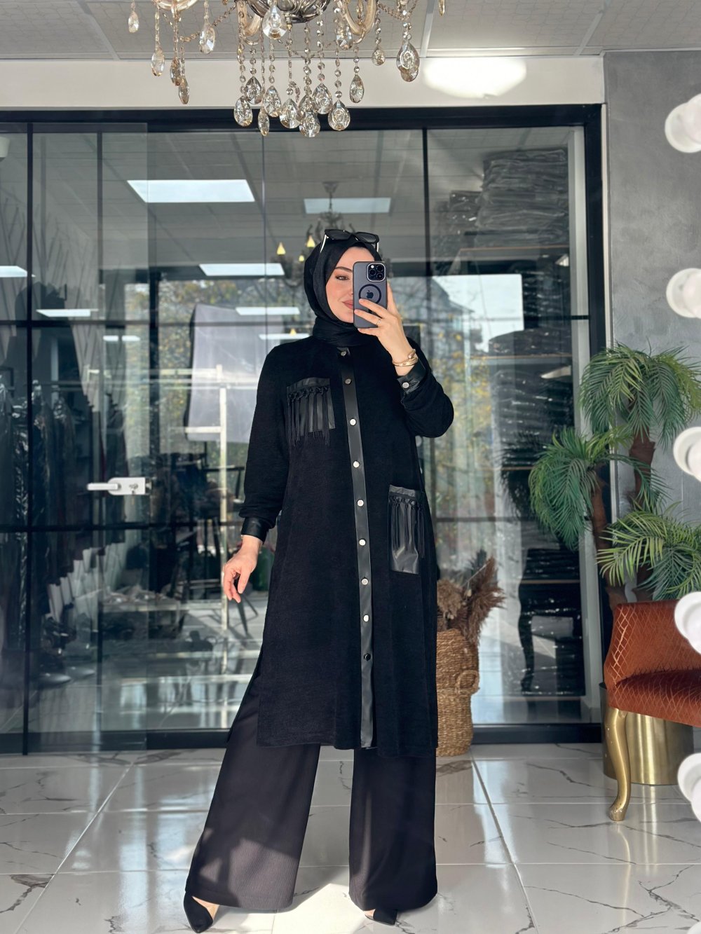 Kumaşı örme kumaştır. Deri kombinlidir. Önü düğmelidir. Cepleri mevcuttur.