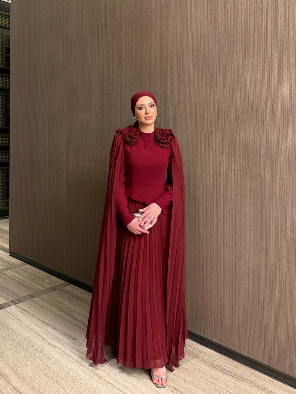 Ürün 1. Sınıf Üst Krep Alt Kısım ve Pelerin Şifon Kumaştır.