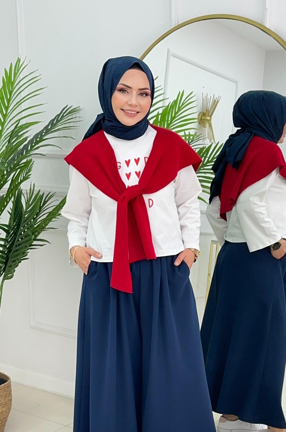 LİYA PARÇALI OMUZ ATKI - KIRMIZI