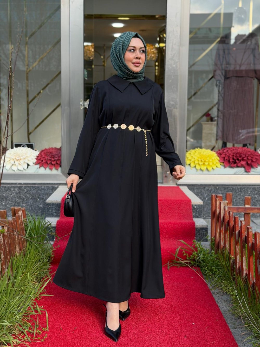Kumaşı kreptir. Arkası yarım fermuarlıdır. Cep yoktur. Kemer dahil değildir.