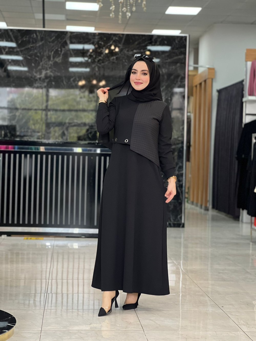 Krepten yapılan kumaşı sayesinde hem kış hem yaz aylarında rahatlıkla tercih edilebilir. Tam kalıp yapısı, vücudu saran ve estetik bir görünüm sağlayan bu elbise, tesettür giyim koleksiyonunuzda yer alması gereken bir parça olacaktır.
